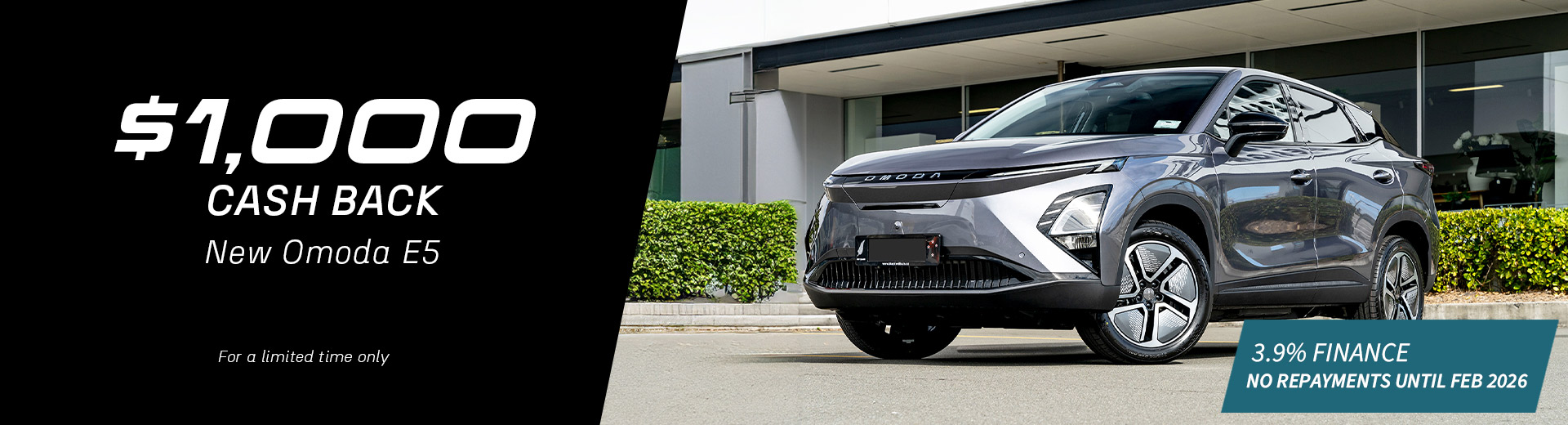 *Terms and Conditions: Purchase any new Omoda Jaecoo model and receive a $1,000 incl. GST ‘Cash Back’ discount off the MSRP, when you purchase between December 1st and December 31st 2025. Cash Back is applied as a discount to the vehicle MSRP at time of purchase and is not redeemable for cash. 3 months deferred repayments offer is based on a 10% deposit and an interest rate of 3.9% p.a. is fixed for the 36-month term of the loan and is available on all new Omoda Jaecoo Models from 1st of December 2025 to 31st December 2025. If you defer your payments up to 3 months, interest will still accrue during the deferral period and will be added to and form part of the loan, together with applicable fees. Payments will begin on the date falling 3 months after the first schedule repayment date. You must repay the full amount of the loan, and your repayments will be spread over the remaining loan term. This offer is not available in conjunction with any other finance offer. The loan term cannot exceed 36 months, and structured payments are not available on this offer. A PPSR fee of $10.35, a monthly maintenance fee of $2, a UDC loan fee of $130, a dealer origination fee of $395 will apply. The loan is provided by UDC Finance Limited. UDC’s lending criteria and standard terms and conditions apply. Not available in conjunction with any other offer. Offer ends December 31st 2025 or while stock last. Chery Motor New Zealand Limited reserves the right to remove or adjust this offer at any time.